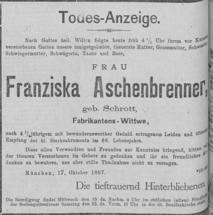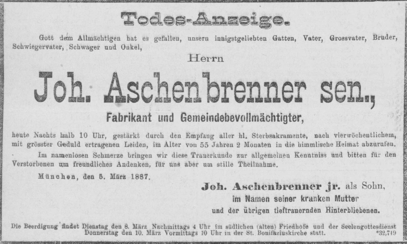 Grab der Familie Aschenbrenner auf dem Alten Südfriedhof München (Februar 2014)