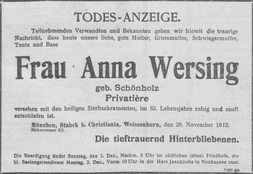 Grab der Familie Wersing auf dem Alten Südfriedhof München (März 2014)