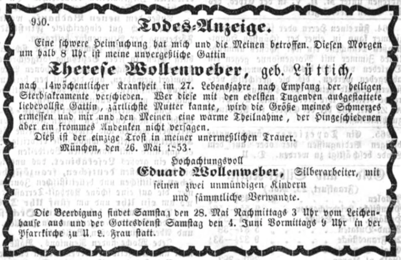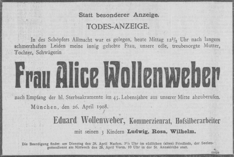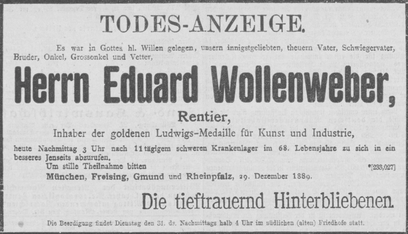 Grab der Familie Wollenweber auf dem Alten Südfriedhof München (Dezember 2012)Grab der Familie Wollenweber auf dem Alten Südfriedhof München (August 2011)Grab der Familie Wollenweber auf dem Alten Südfriedhof München (September 2011)Grab der Familie Wollenweber auf dem Alten Südfriedhof München (September 2011)