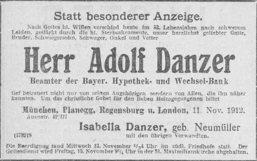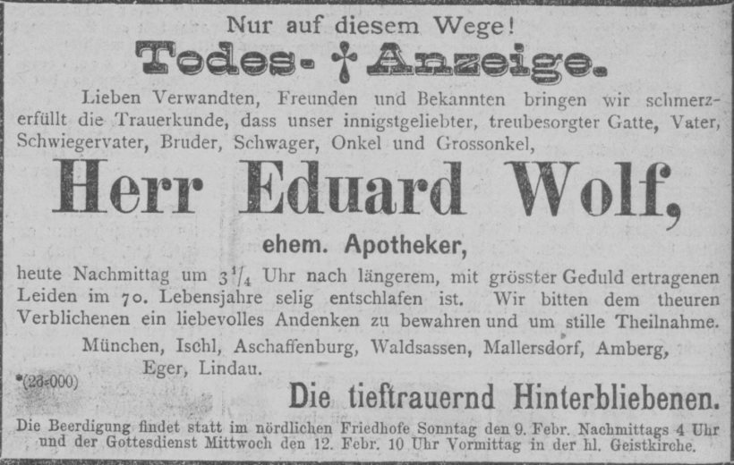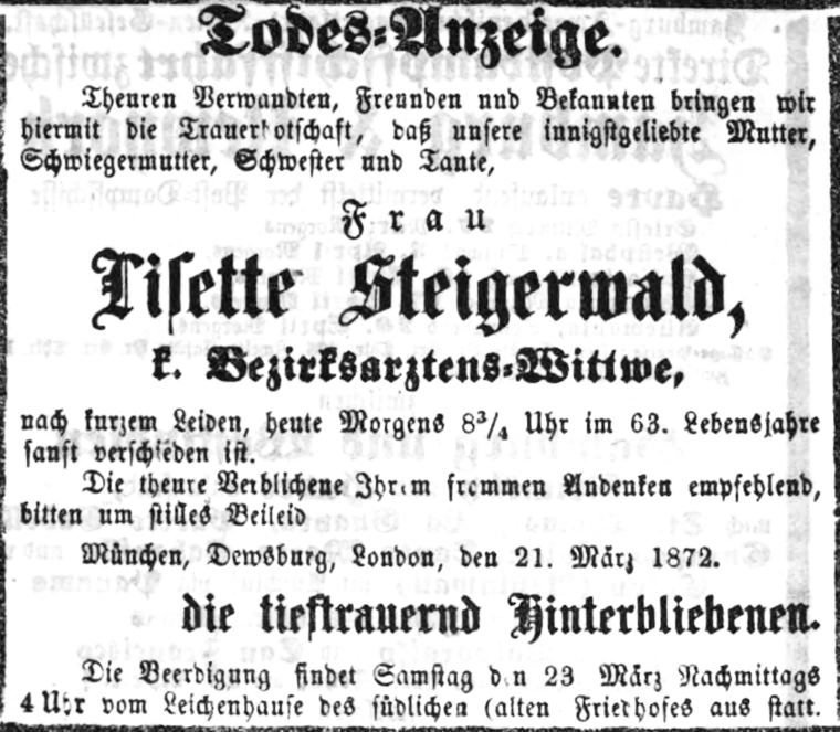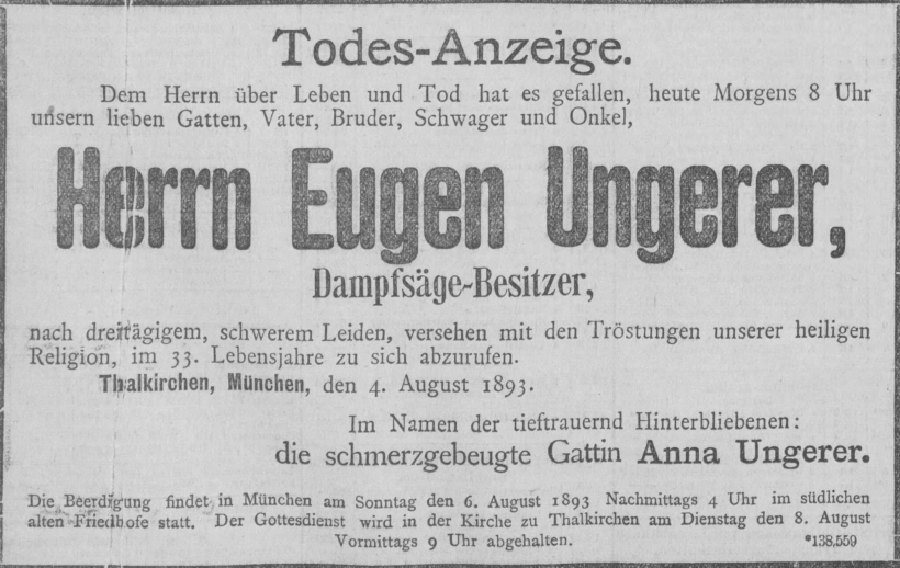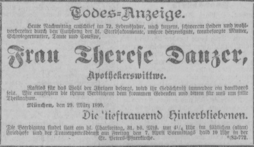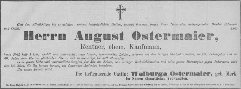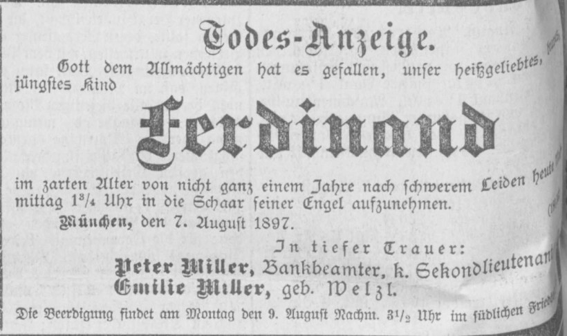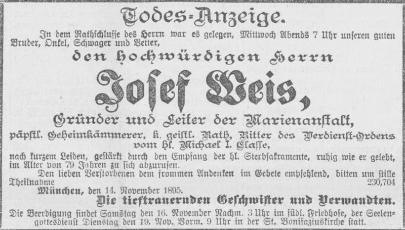 Grab der Marienanstalt auf dem Alten Südfriedhof München (Oktober 2007)Josef Weis. Abbildung aus »Neues Münchener Tagblatt«. Sonntag, den 17. November 1895.