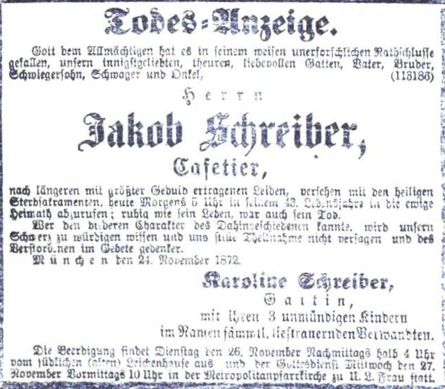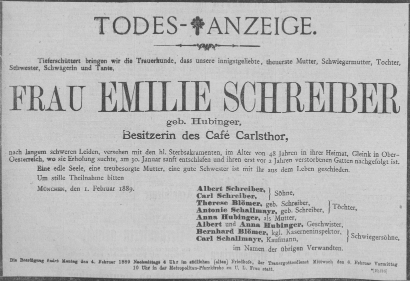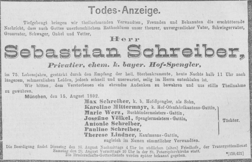 Grab der Familie Schreiber auf dem Alten Südfriedhof München (Juli 2020)Grab der Familie Schreiber auf dem Alten Südfriedhof München (März 2014)Grab der Familie Schreiber auf dem Alten Südfriedhof München (August 2011)